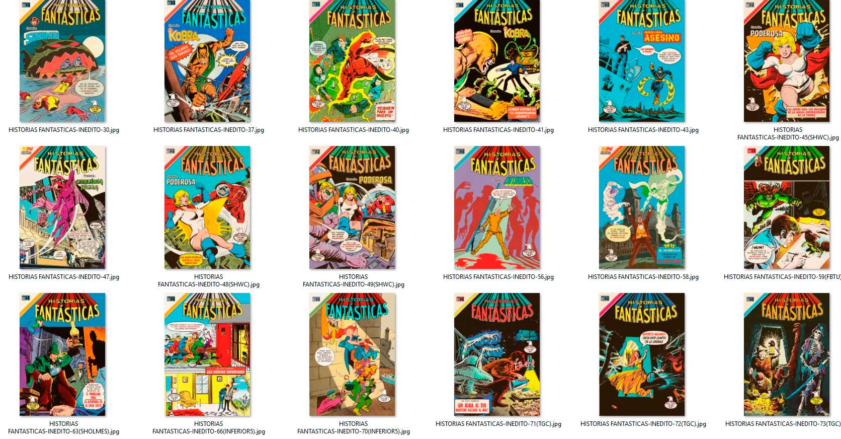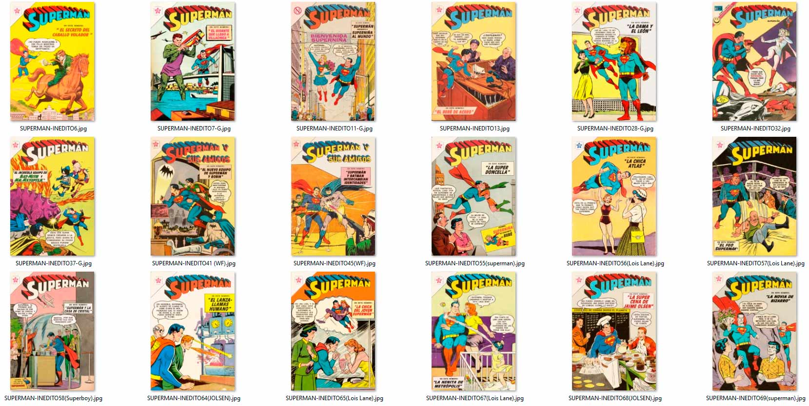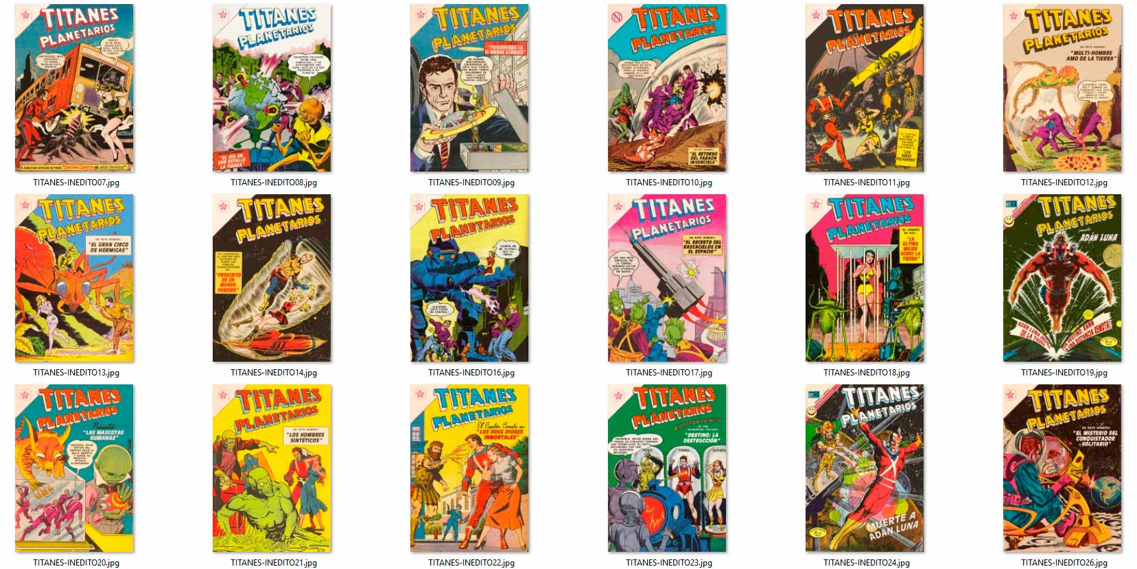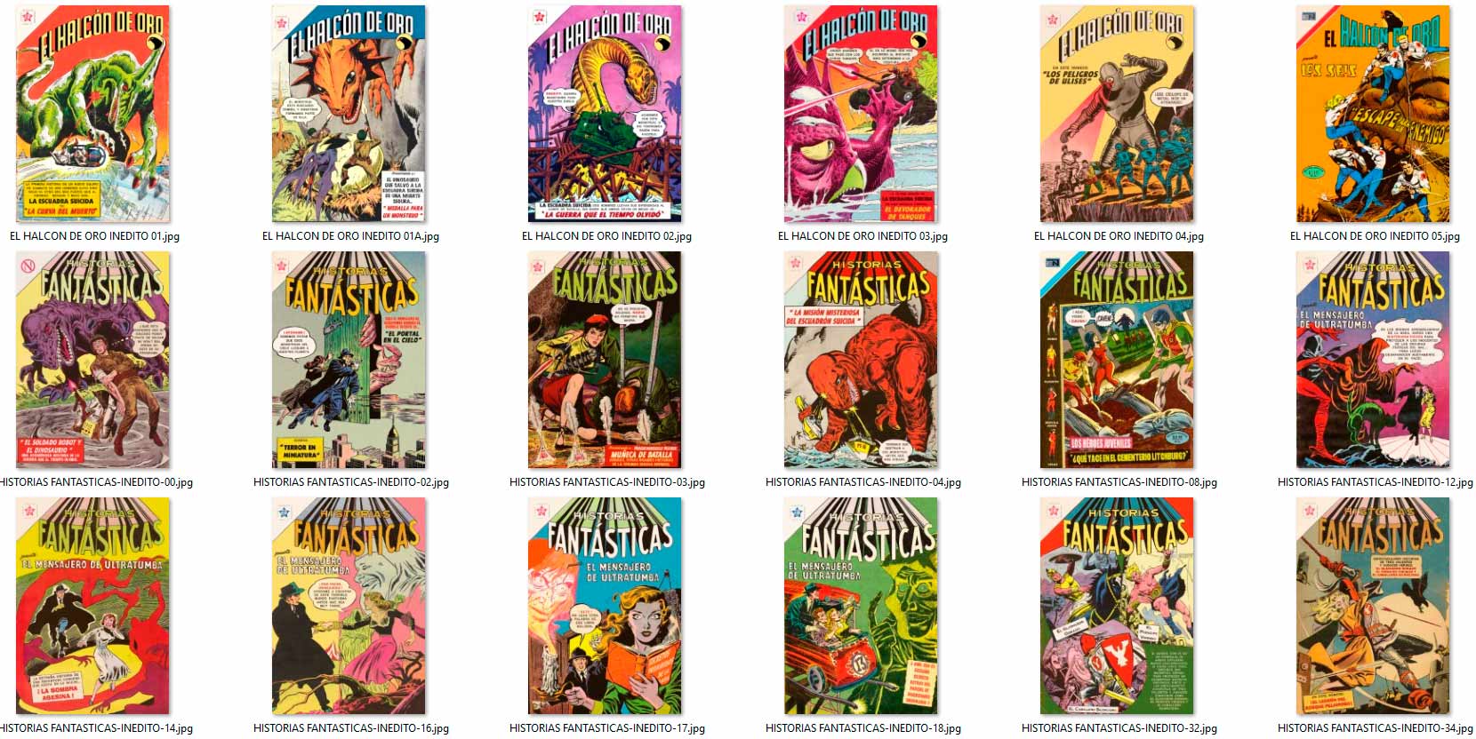 los "INÉDITOS" aparecieron por vez primera en el grupo de Facebook HISTORIETAS NOVARO en el 2020, como maquetaciones realizadas en base a historietas que NO salieron publicadas en forma completa por la Editorial Novaro, La Prensa o Ed. Sol (ya sea portadas y/o contenido) en su época, y que fueron escaneadas y/o traducidas por los fans de los clásicos comics.