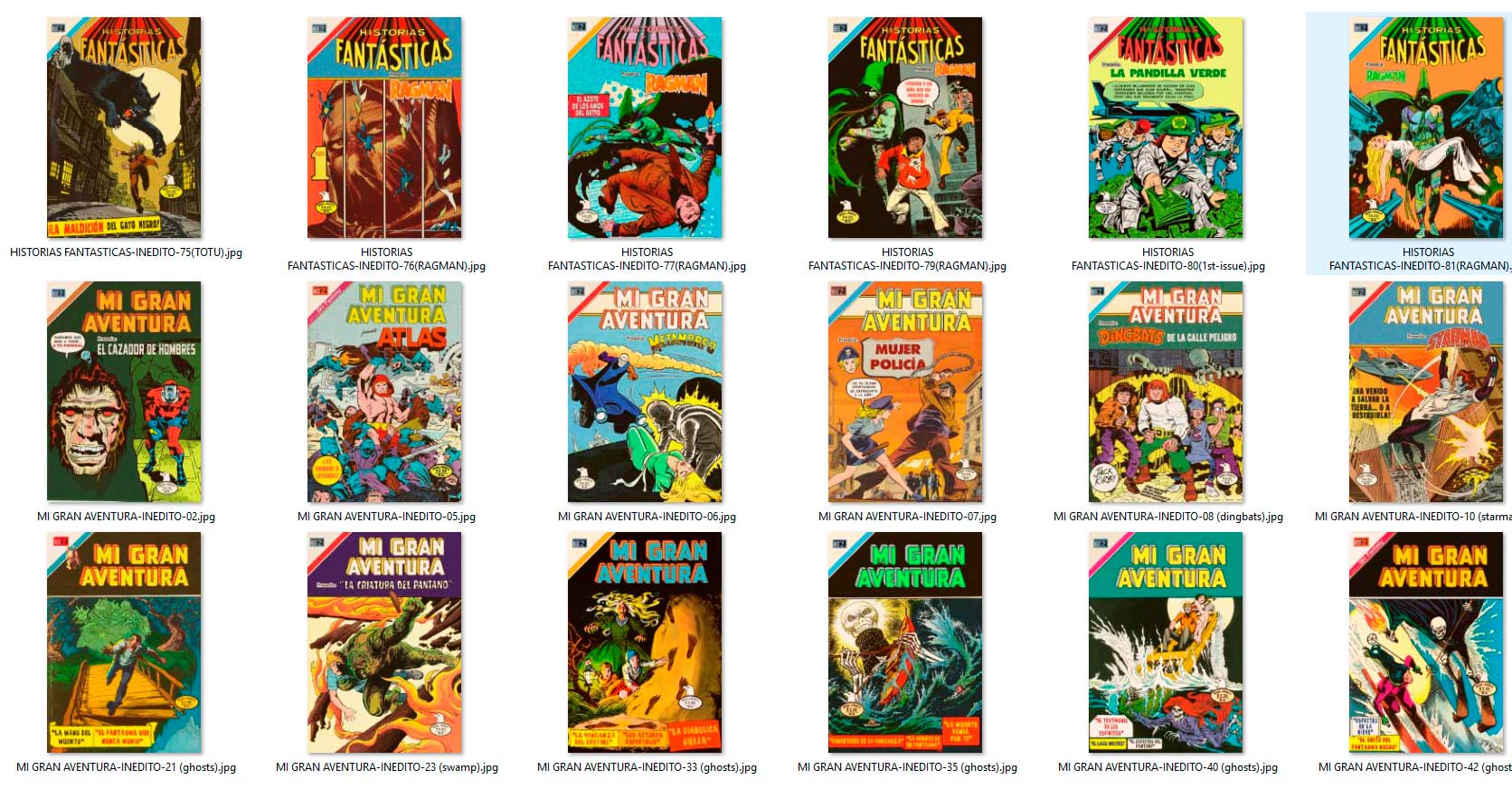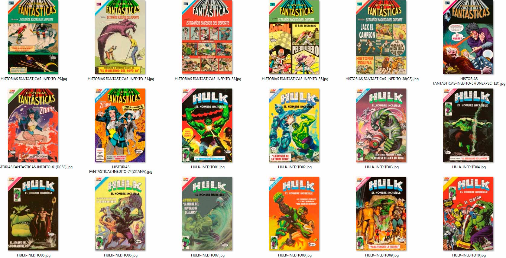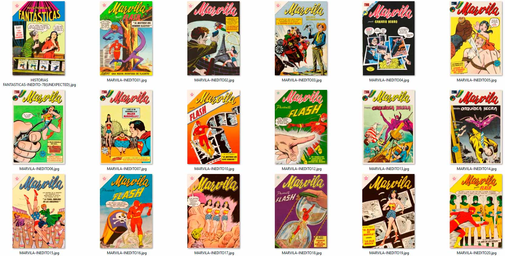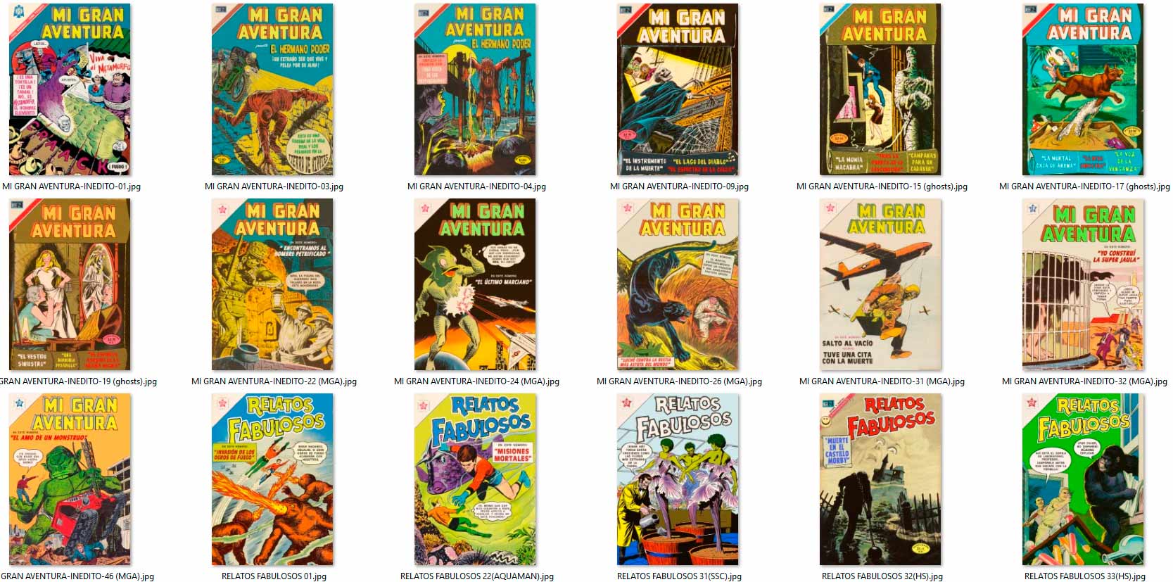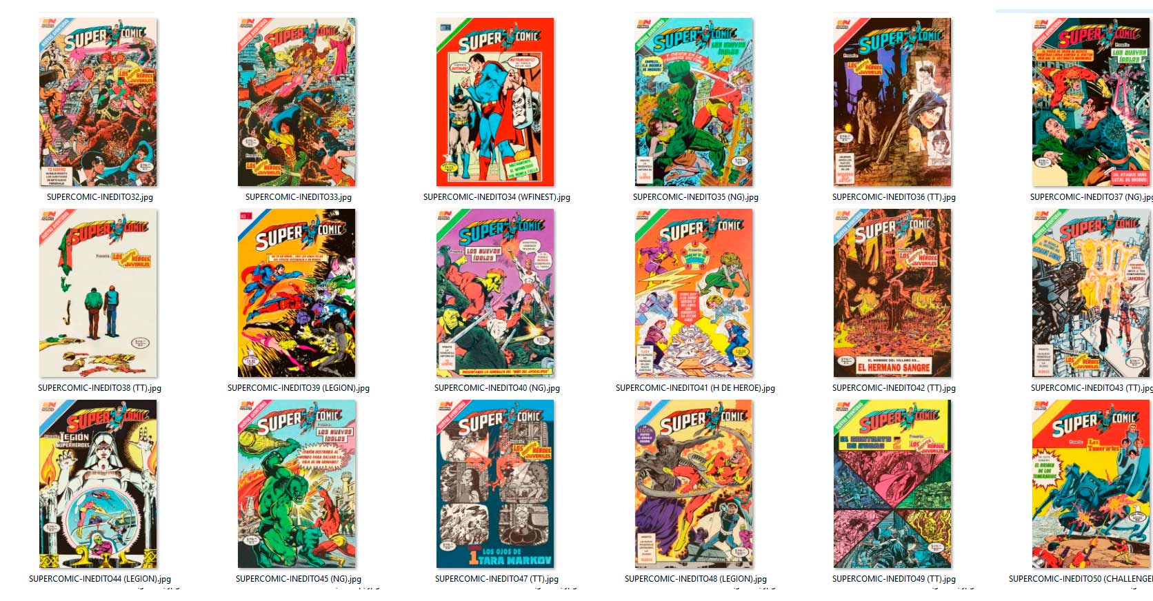 los "INÉDITOS" aparecieron por vez primera en el grupo de Facebook HISTORIETAS NOVARO en el 2020, como maquetaciones realizadas en base a historietas que NO salieron publicadas en forma completa por la Editorial Novaro, La Prensa o Ed. Sol (ya sea portadas y/o contenido) en su época, y que fueron escaneadas y/o traducidas por los fans de los clásicos comics.