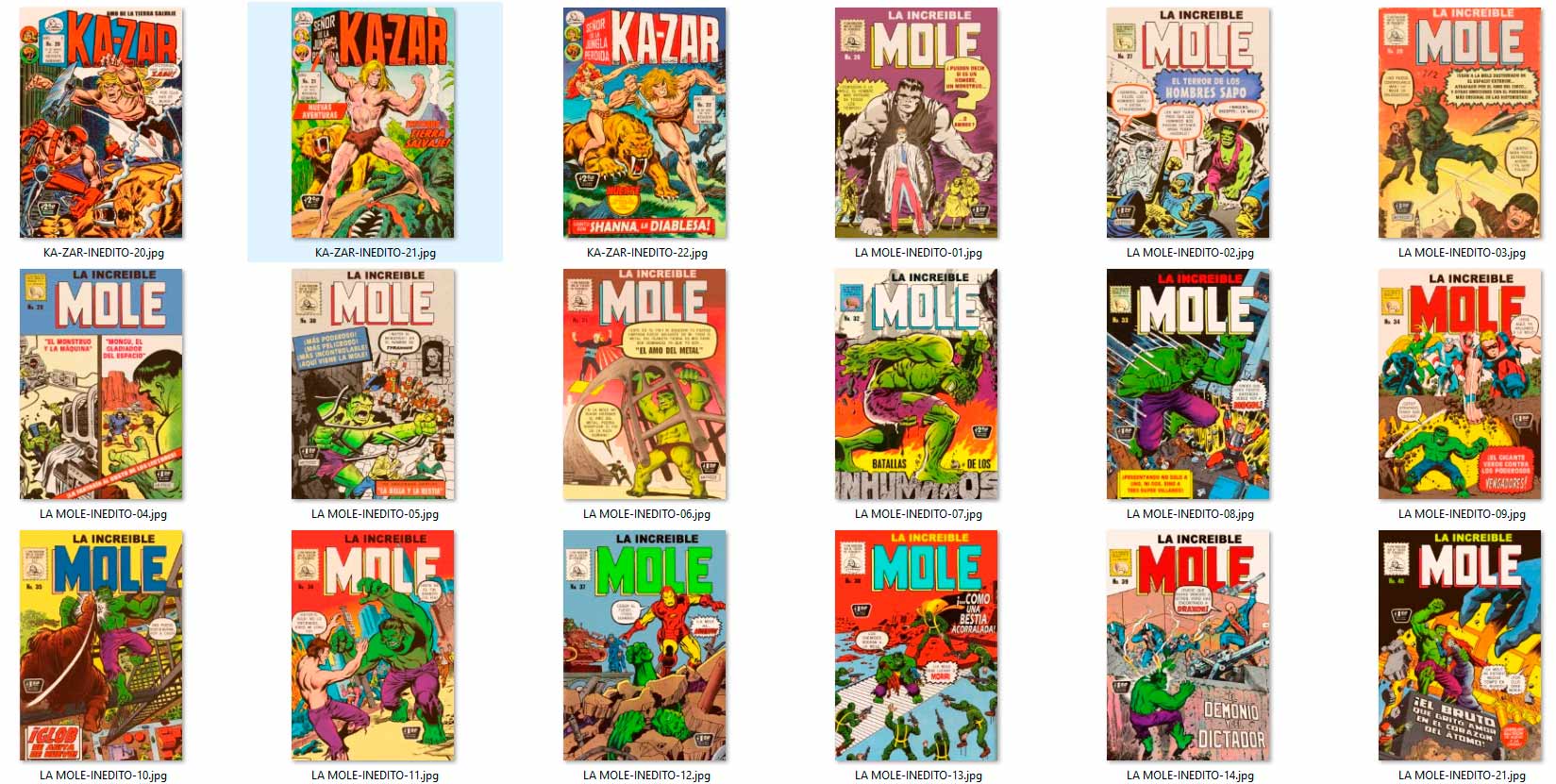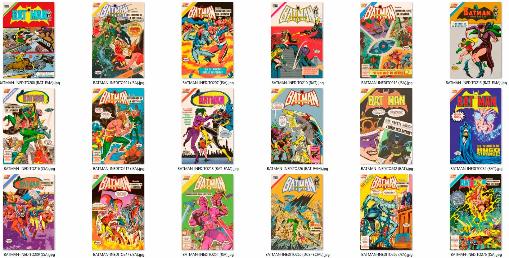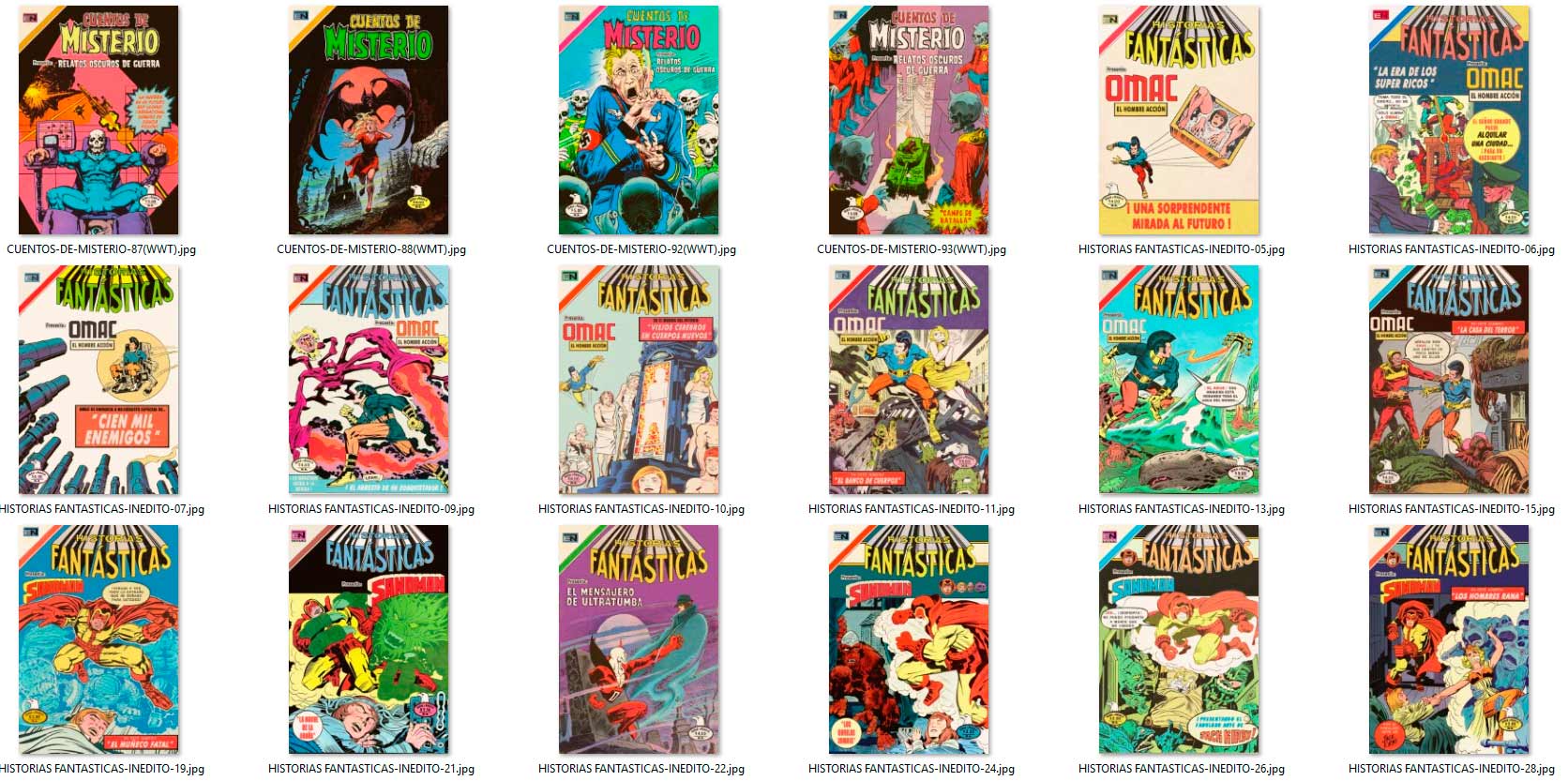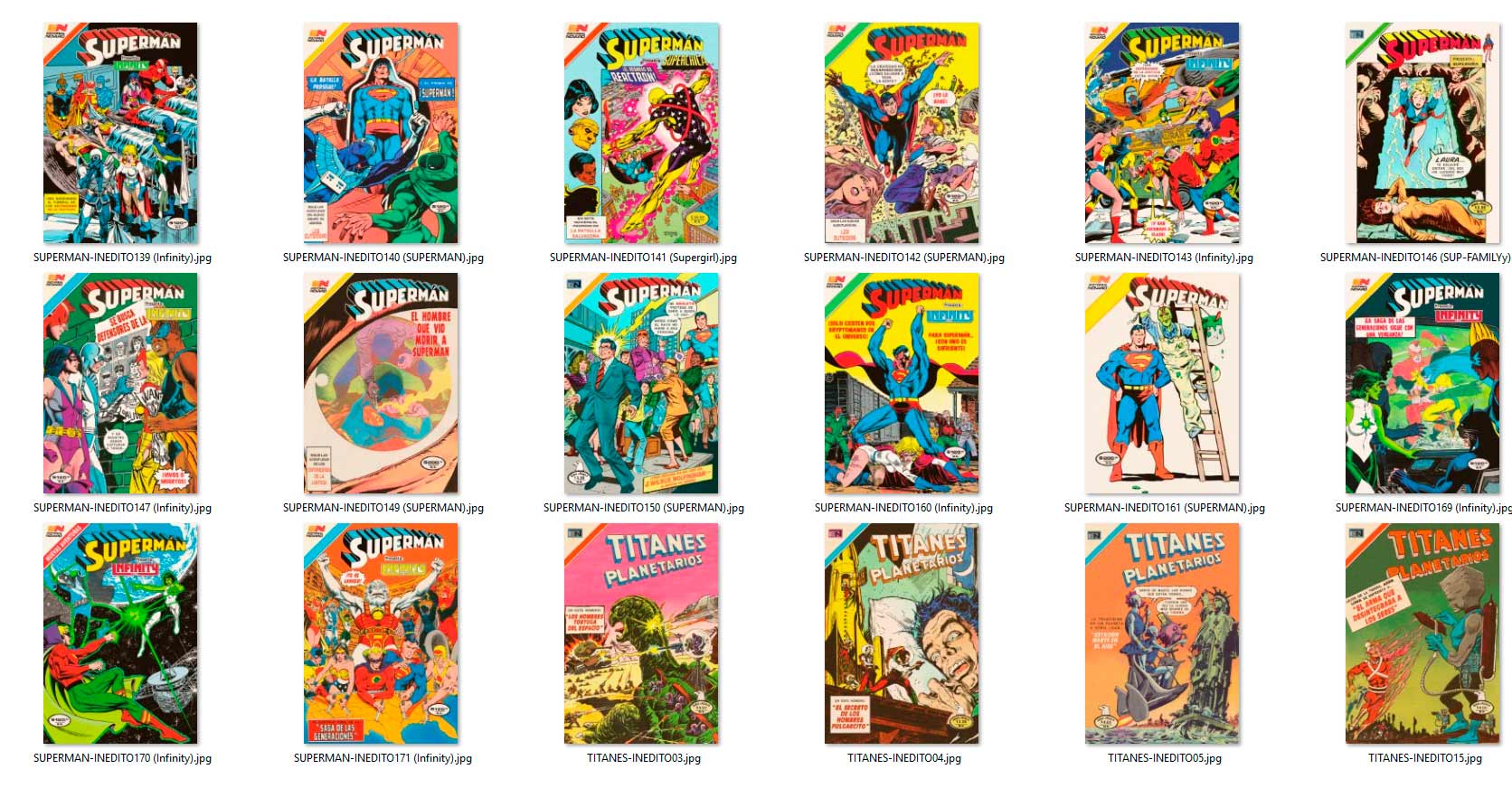 los "INÉDITOS" aparecieron por vez primera en el grupo de Facebook HISTORIETAS NOVARO en el 2020, como maquetaciones realizadas en base a historietas que NO salieron publicadas en forma completa por la Editorial Novaro, La Prensa o Ed. Sol (ya sea portadas y/o contenido) en su época, y que fueron escaneadas y/o traducidas por los fans de los clásicos comics.